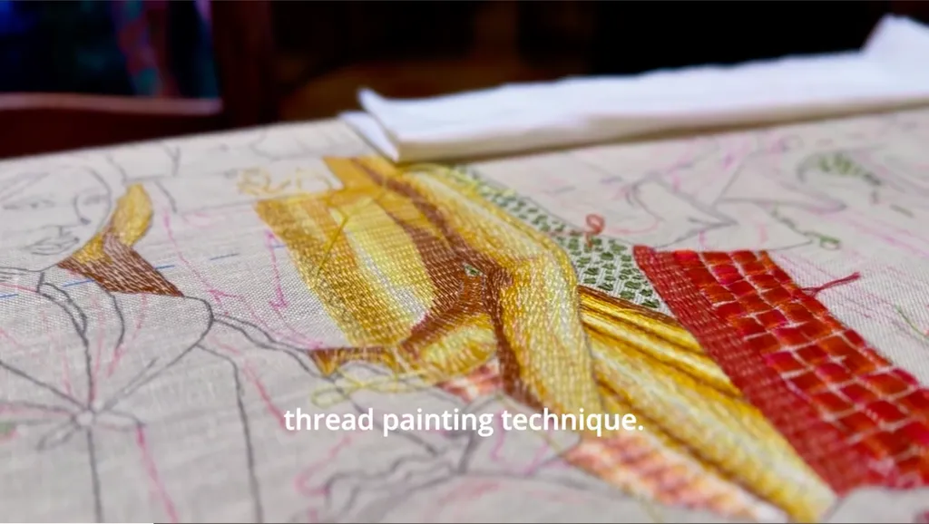 Showcasing multimedia techniques, painted details, handmade quilts, and river stitching.