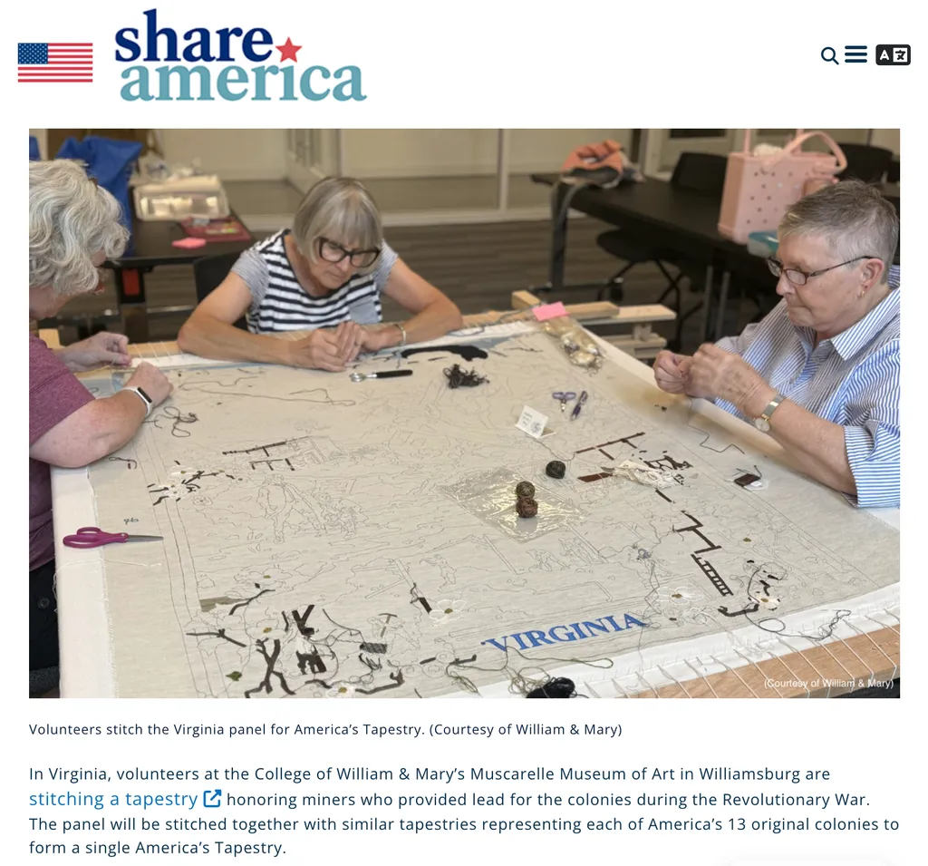 In their "Freedom 250" Series, Share America featured the Virginia panel of America's Tapestry as they highlighted artists across the country celebrating our nation's 250th anniversary.