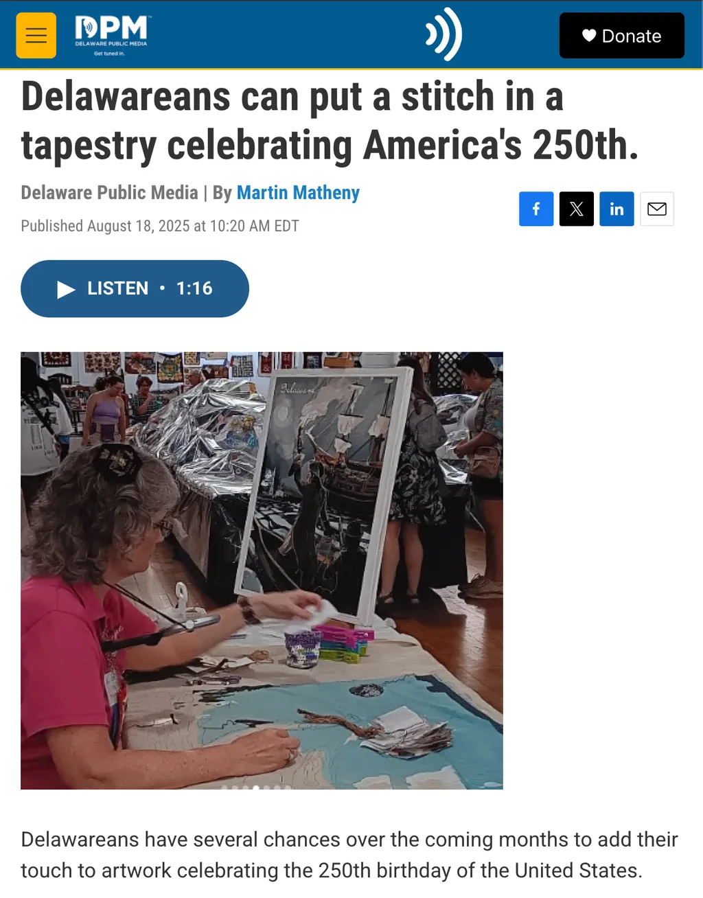 13 states in 15 days! A marathon road trip showcasing stunning embroidery and the dedicated volunteers bringing America's Tapestry to life.